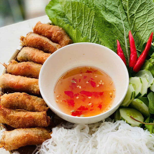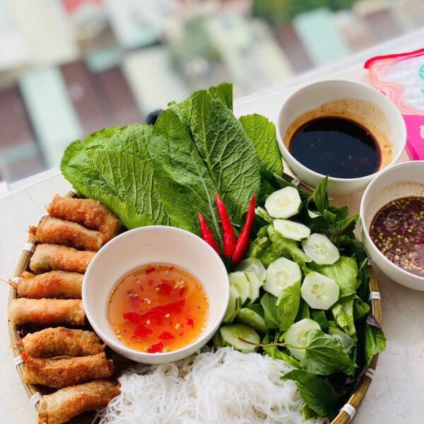 - Thành phần: Thịt băm, tôm đất, gia vị, bỏ bánh cuốn.